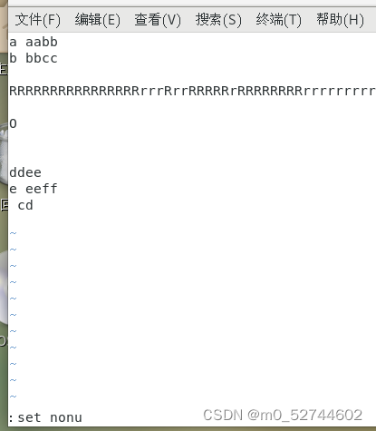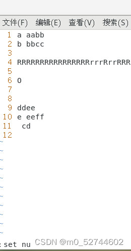 4)set nu:显示文件行号,set nonu 隐藏文件行号