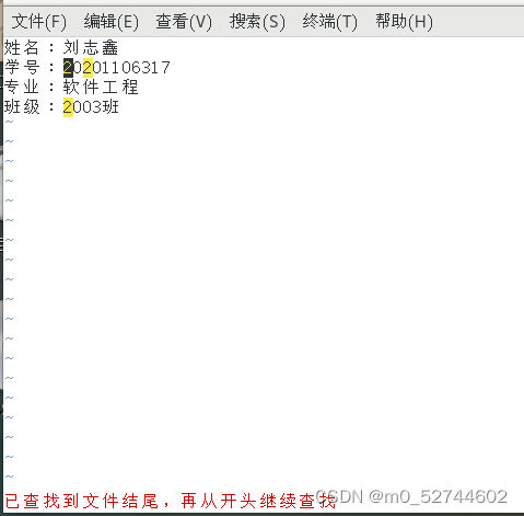 3、在末行模式,寻找字符“2”,并查找下一个。