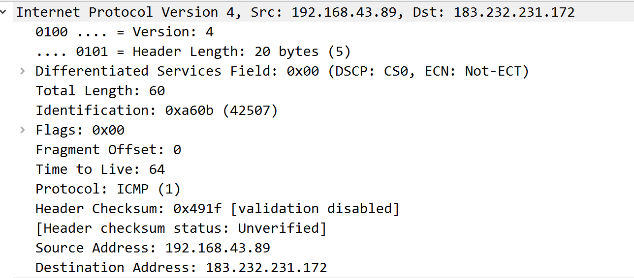 (3)Internet Protocol Version 4: 互联网层IP包头部信息