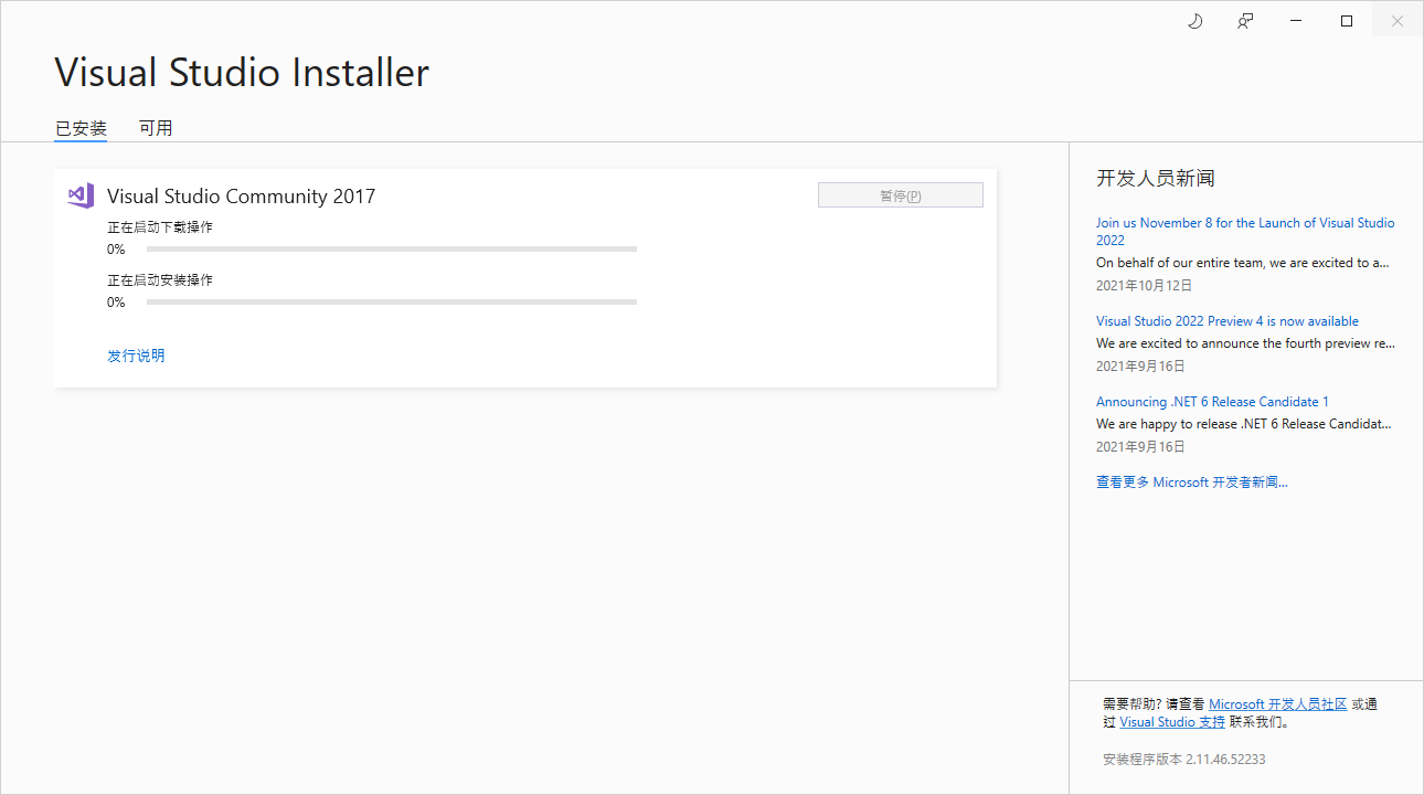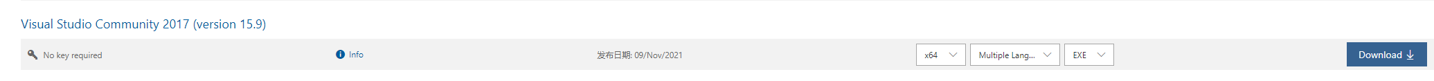 由于网络日益发达,我相信大家可以从各种渠道得到下载地址,vs2017已与之前版本不同的是已经采用了下载器下载,下面是我使用的下载地址