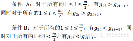 条件 A:对于所有的1≤i≤m/2,有 g2i>g2i-1,同时对于所有的 1≤i≤m/2,有 g2i>g2i+1;