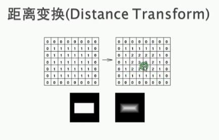 主要用于计算非零像素到最近零像素点的最短距离。一般用于求解图像的骨骼