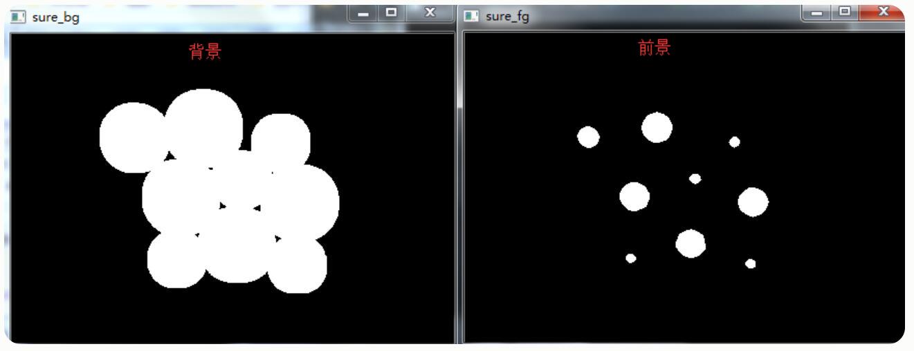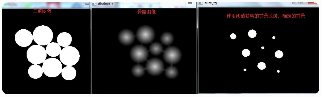 根据distanceTransform操作的结果,设置一个阈值,使用threshold决定哪些区域是前景,这样得到正确结果的概率很高