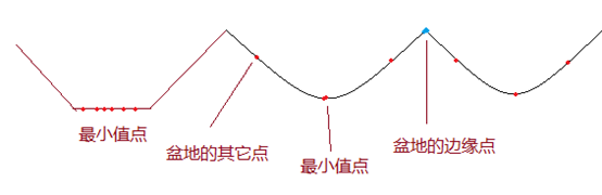 2. 盆地的其它位置点,该位置滴的水滴会汇聚到局部最小点。