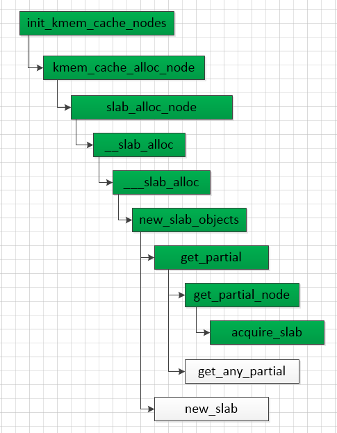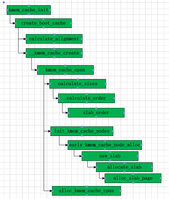 kmem_cache和kmem_cache_node的kmem_cache就创建完成了,可以调用标准的接口了,所以此时要将kmem_cache和kmem_cache_node纳入标准的kmem_cache管理中,由静态变为动态,先列函数流程: