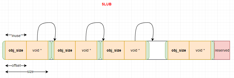 struct kmem_cache {struct kmem_cache_cpu __percpu *cpu_slab;/* Used for retriving partial slabs etc */slab_flags_t flags;unsigned long min_partial;unsigned int size; /* The size of an object including meta data */unsigned int object_size;/* The size of an object without meta data */unsigned int offset; /* Free pointer offset. */struct kmem_cache_order_objects oo;/* Allocation and freeing of slabs */struct kmem_cache_order_objects max;struct kmem_cache_order_objects min;gfp_t allocflags; /* gfp flags to use on each alloc */int refcount; /* Refcount for slab cache destroy */void (*ctor)(void *);unsigned int inuse; /* Offset to metadata */unsigned int align; /* Alignment */unsigned int reserved; /* Reserved bytes at the end of slabs */unsigned int red_left_pad; /* Left redzone padding size */const char *name; /* Name (only for display!) */struct list_head list; /* List of slab caches */unsigned int useroffset; /* Usercopy region offset */unsigned int usersize; /* Usercopy region size */struct kmem_cache_node *node[MAX_NUMNODES];