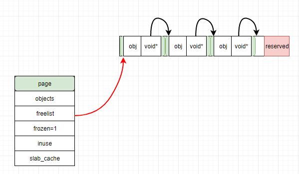 struct page {unsigned long flags; union {};union { void *freelist; };union { struct {unsigned inuse:16;unsigned objects:15;unsigned frozen:1;};};union {struct { struct page *next; int pages; int pobjects; };}union {struct kmem_cache *slab_cache; };