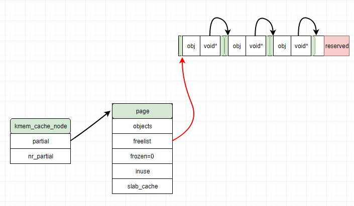 这个很容易理解,一个slab不完全是free的,因此freelist指向也是不确定的。最终在下面