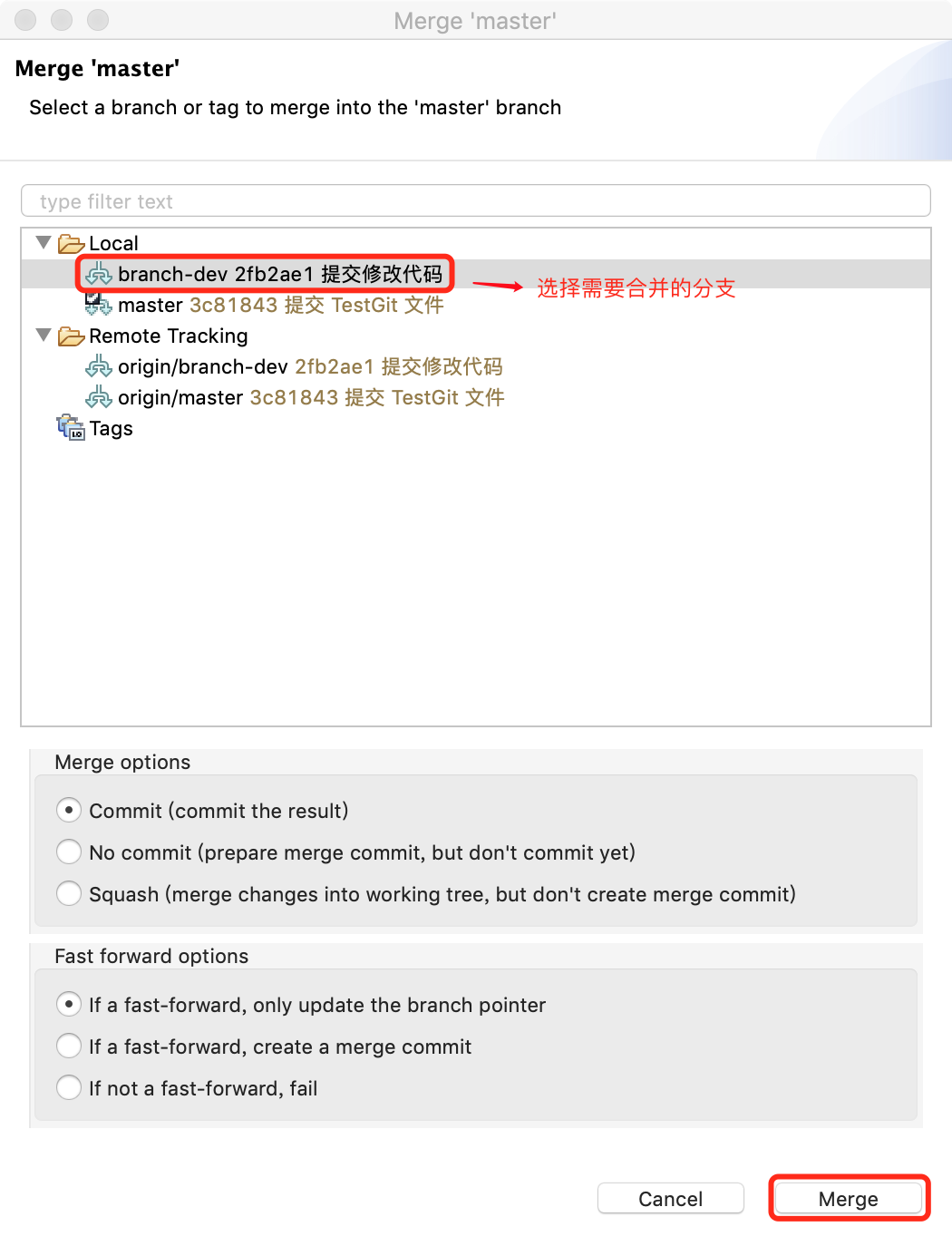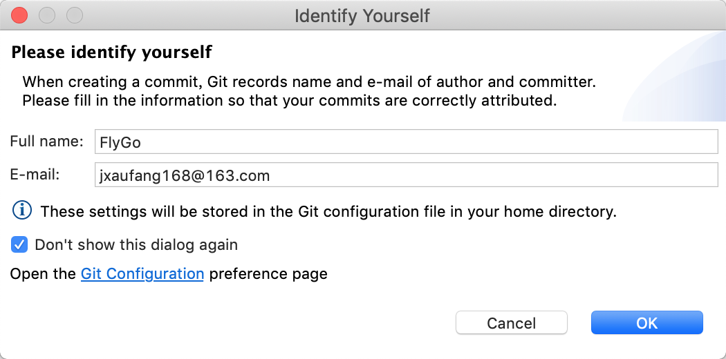 3.3、第一次合并,有可能提示,填写 名称 和 邮箱