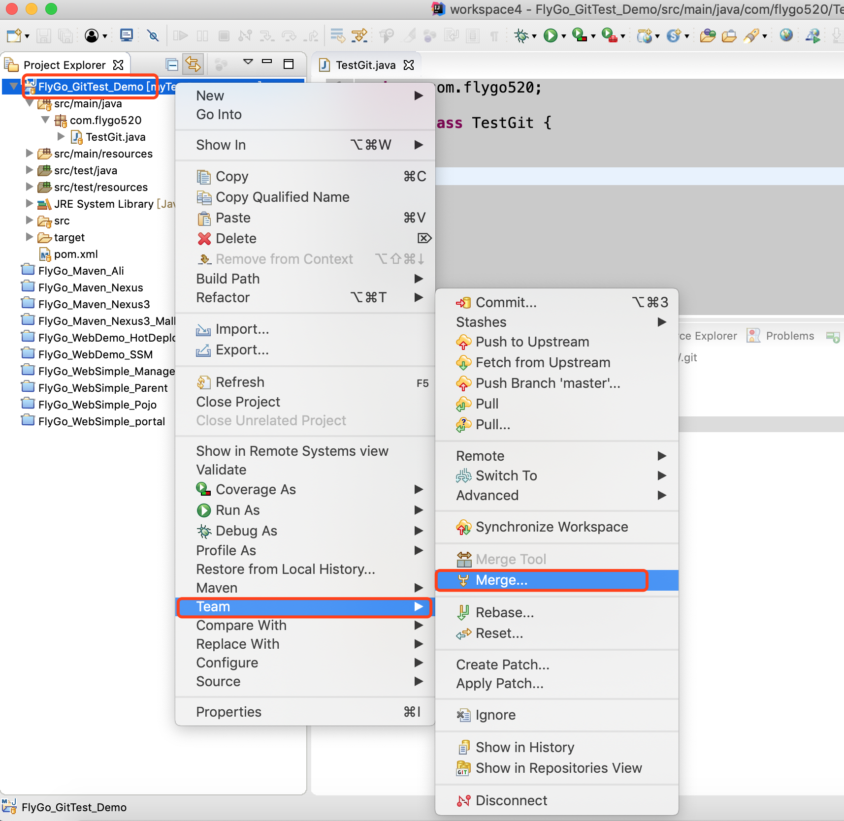 3.2、右键工程 – > 选择 Team –> 选择 Merge...