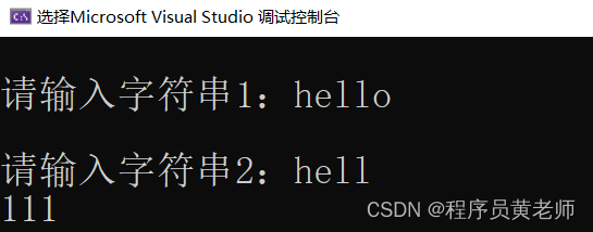 {char a1[256];char a2[256];printf("\n请输入字符串1:");gets_s(a1);printf("\n请输入字符串2:");gets_s(a2);printf("%d", MyStrCmp(a1, a2));}