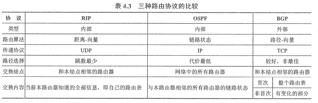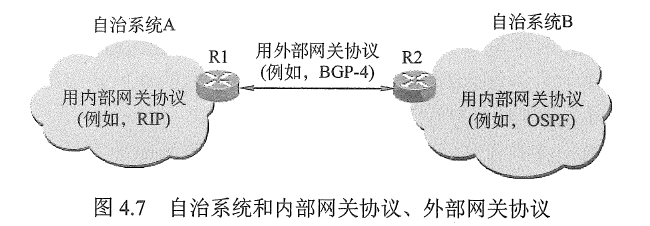 - 一个自治系统内部所使用的路由选择协议称为内部网关协议(IGP), 也称域内路由选择,具体的协议有RIP 和OSPF 等。
